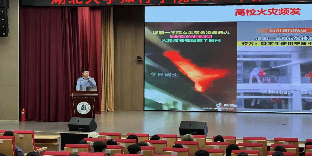 讲座中,围绕“安全用火用电”核心主题,结合近年来国内典型校园火灾案例,深入浅出地讲解了消防安全基础知识、火灾隐患排查方法、初期火灾扑救技巧以及火场逃生自救要点等内容,重点强调了日常用电、用火过程中的安全注意事项,让在场师生对消防安全有了更为全面和深刻的认识。