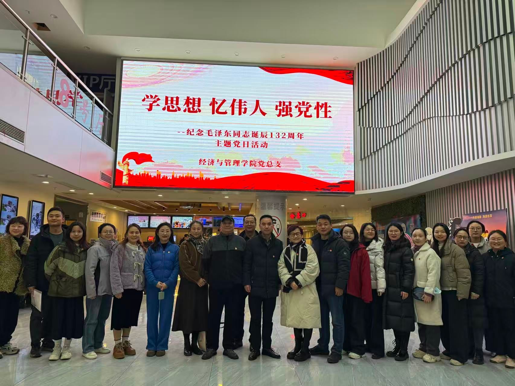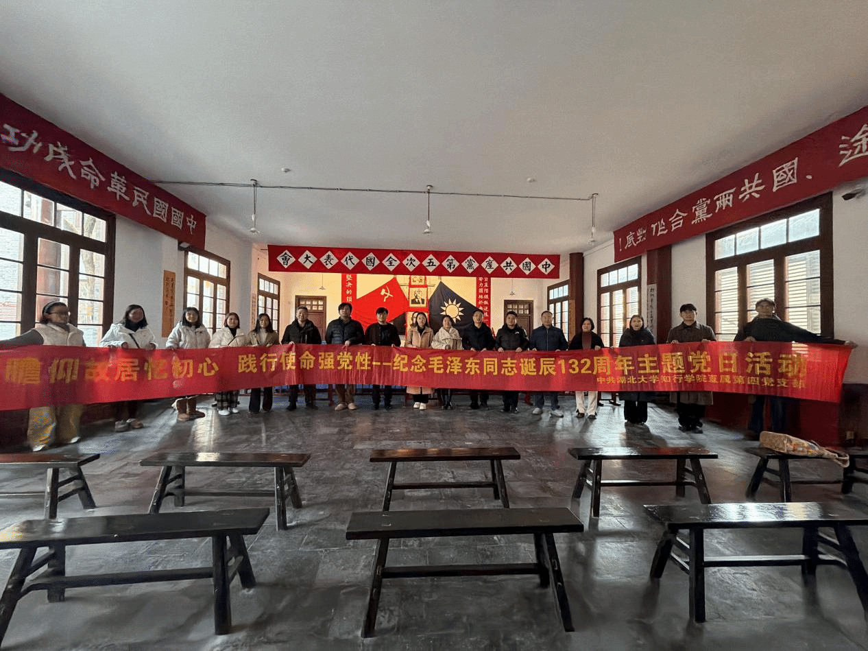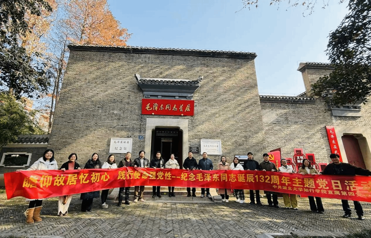 为深切缅怀毛泽东同志的丰功伟绩和崇高风范,持续巩固主题教育成果,引导党员坚定理想信念、强化党性修养,激发干事创业热情,2025年12月26日下午,中共湖北大学知行学院直属第四党支部联合经管学院党总支,共同组织开展了“瞻仰故居忆初心 践行使命强党性”主题党日活动。本次活动旨在通过实地参观与观影学习相结合的方式,重温革命历史,传承红色基因,凝聚奋进力量。