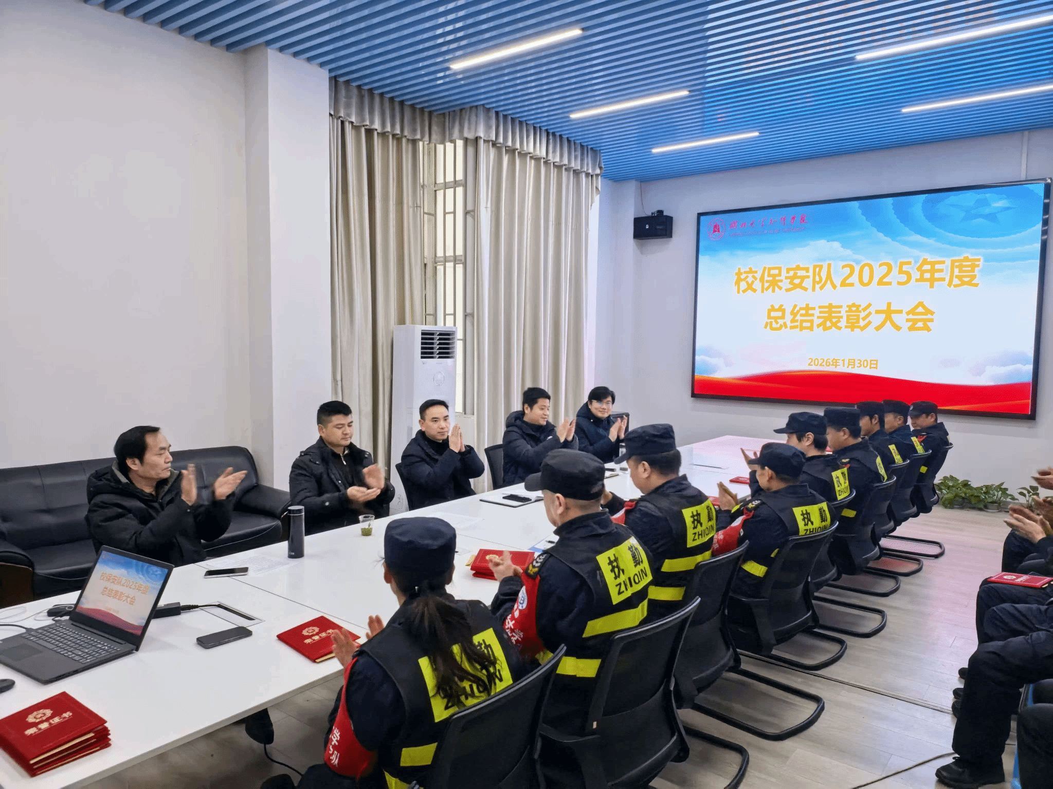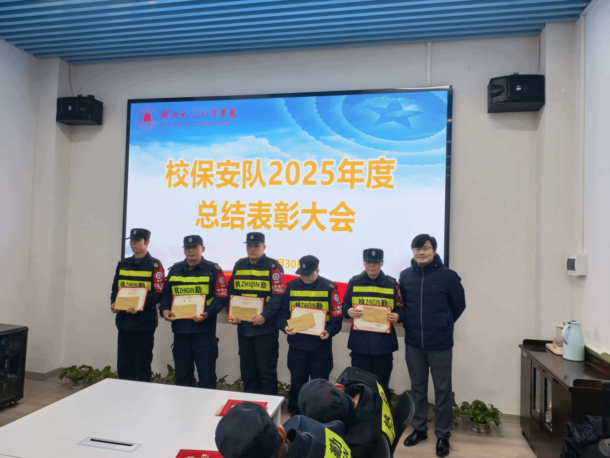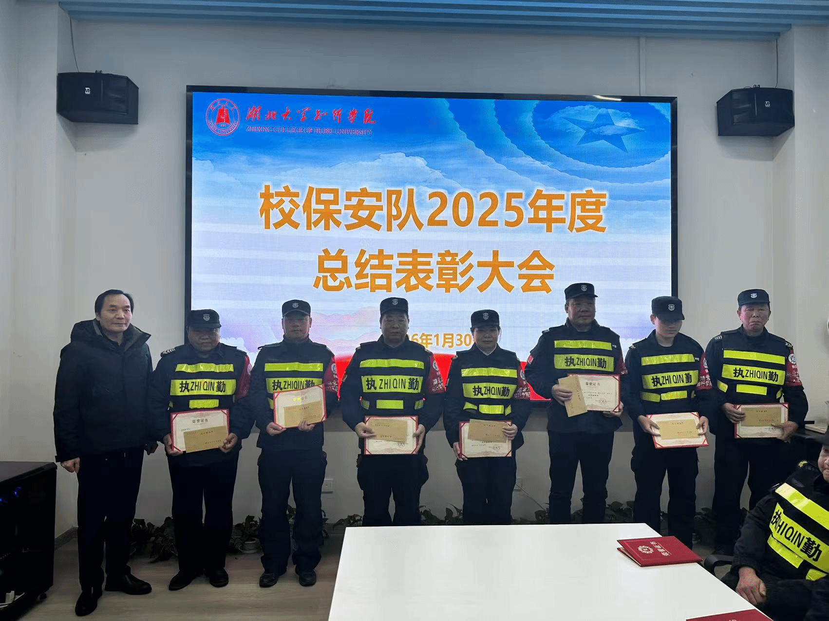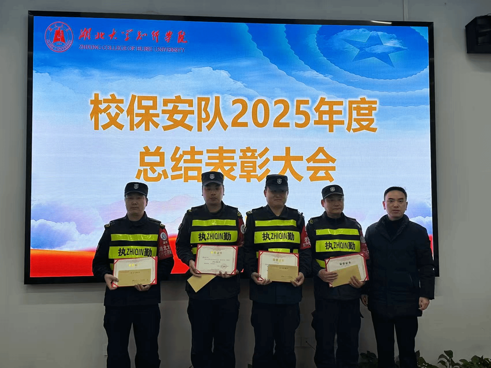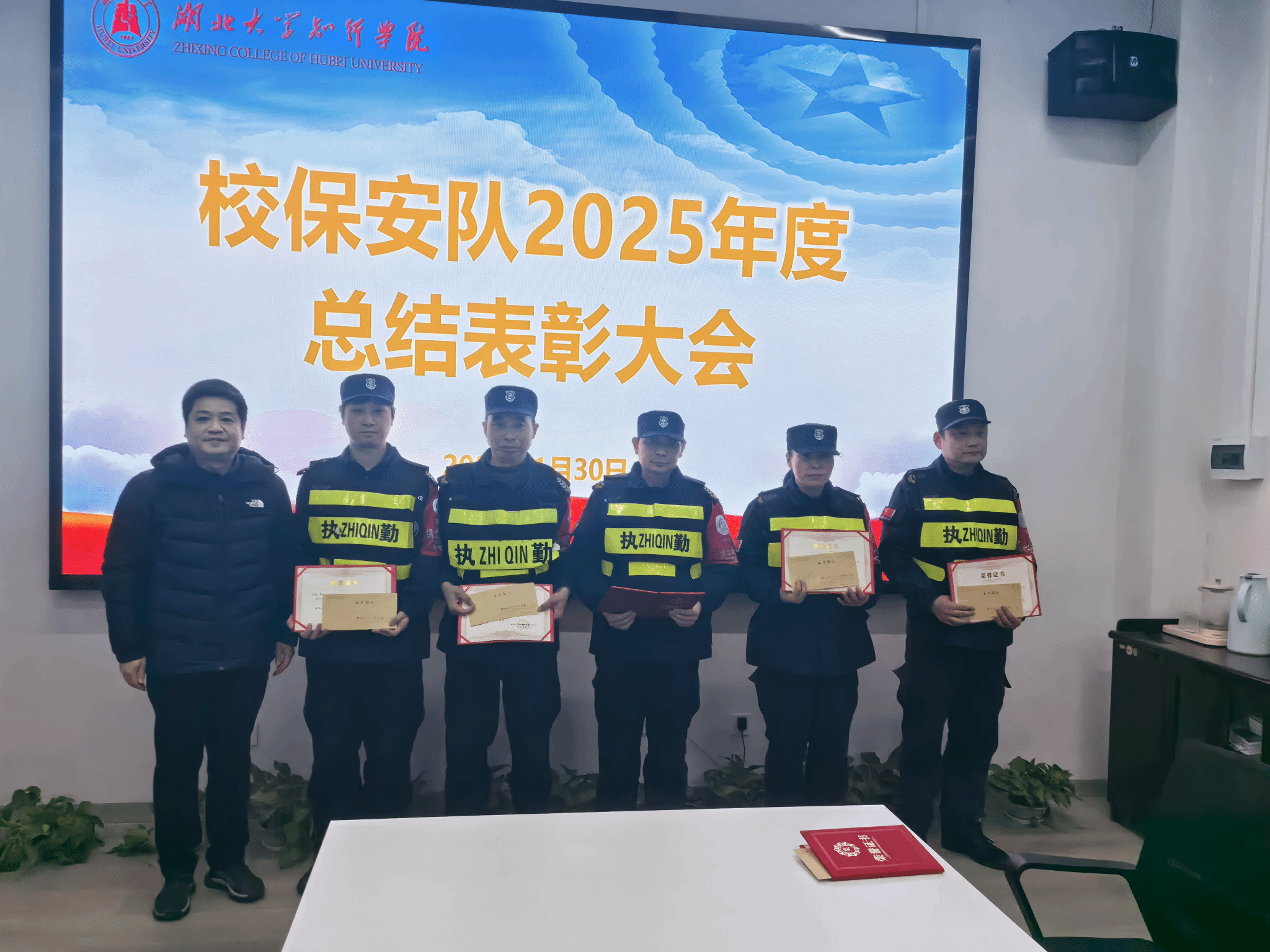 2026年1月30日上午,湖北大学知行学院保卫部(处)在知远楼108会议室隆重召开2025年度保安队总结表彰大会。校党委委员、副校长刘张虎出席会议并讲话。保卫部(处)部(处)长袁成钢主持会议,保卫部(处)副部(处)长李杨、主管保安队老师贺武,武汉洪保公司区域经理晏德奎、保安队队长董兴虎及全体保安队员参加会议。