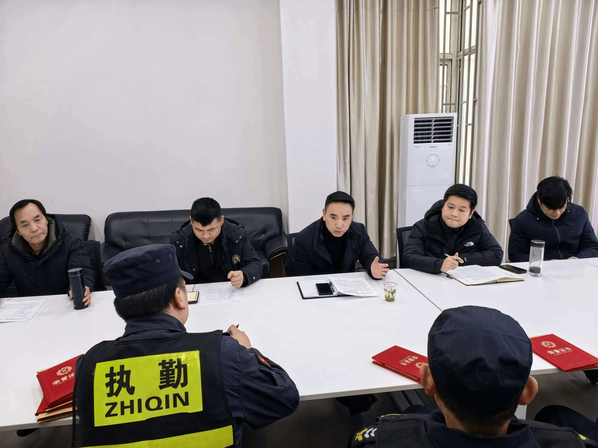 会议首先由保安队队长董兴虎作2025年度工作总结汇报。董队长全面回顾了过去一年校园安全保卫、应急处置及日常执勤工作,深入分析了存在的不足,并提出了2026年的工作思路。随后,武汉洪保公司区域经理晏德奎代表公司对保安队一年来的工作表现给予了高度评价,并表示将继续加强合作,全力支持学校安全工作。