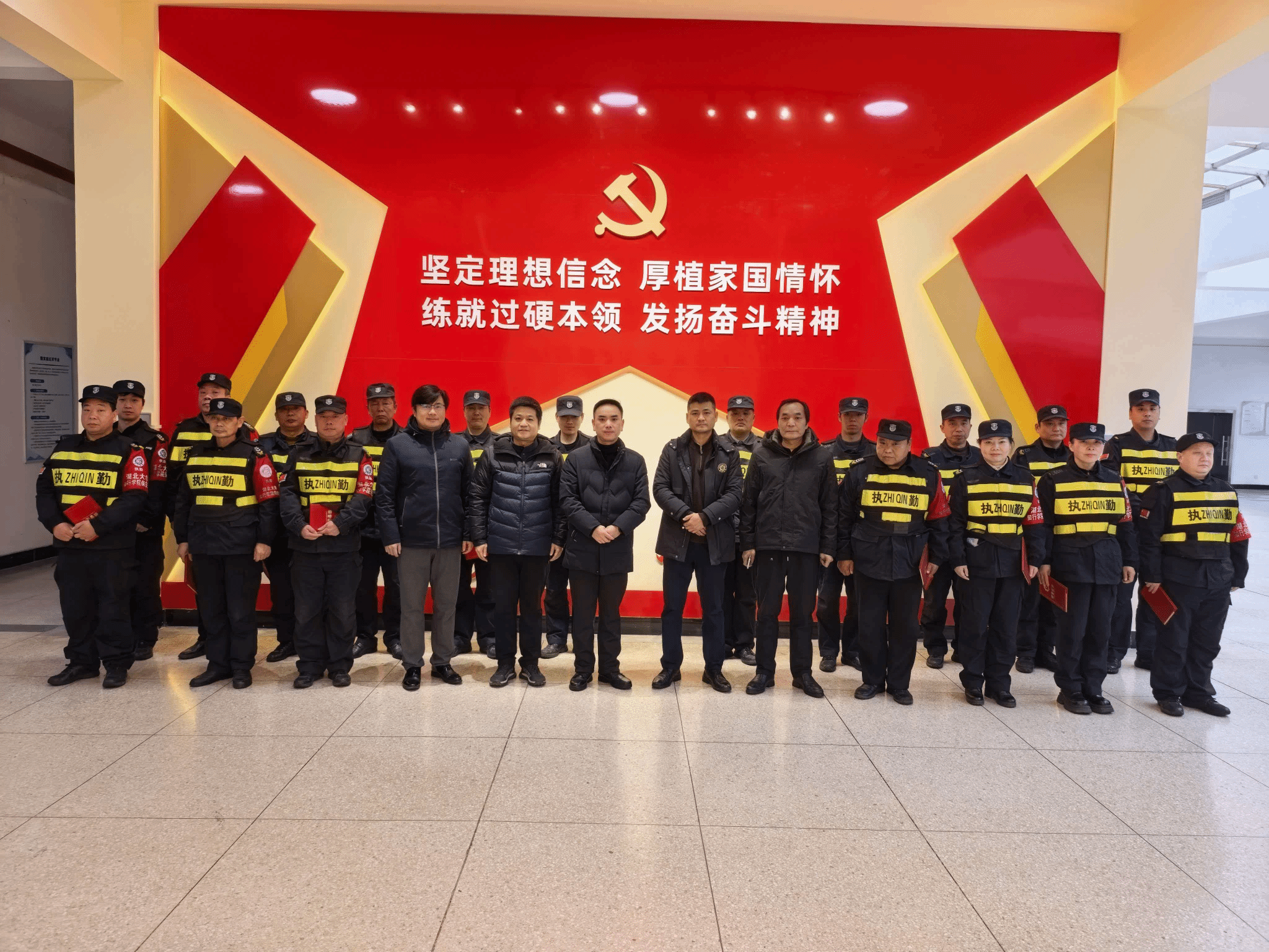 最后,全体参会人员移步知远楼大厅合影留念。此次大会不仅是对过去一年安保工作的总结与肯定,更是对未来工作的动员与部署,将进一步激励全体安保人员以更加饱满的热情投入到新一年的校园安全保卫工作中。
