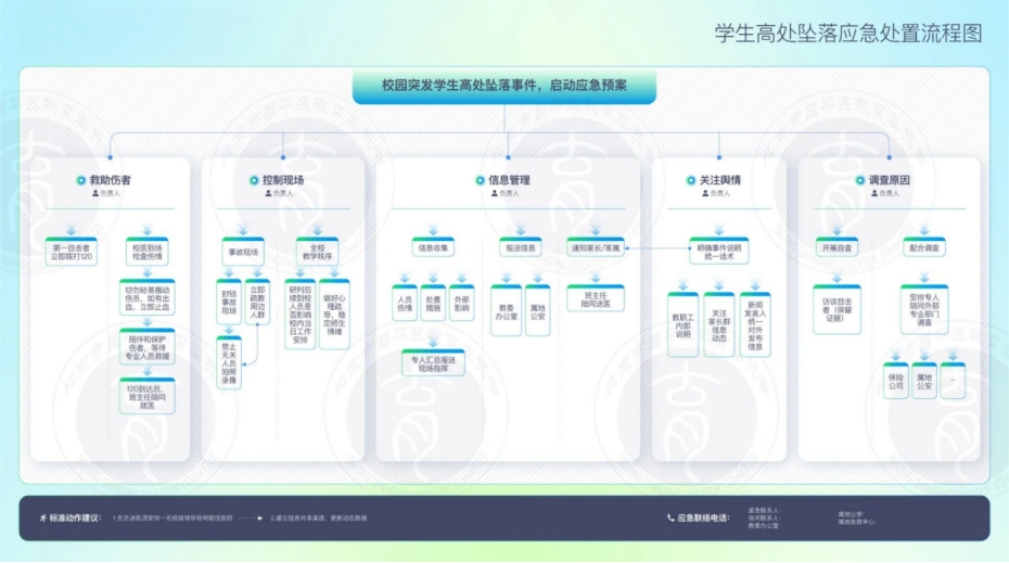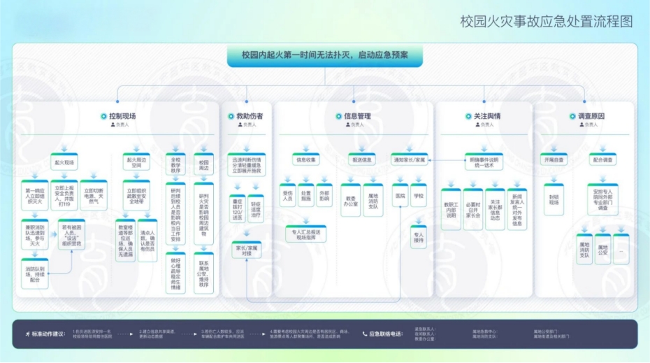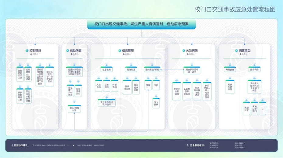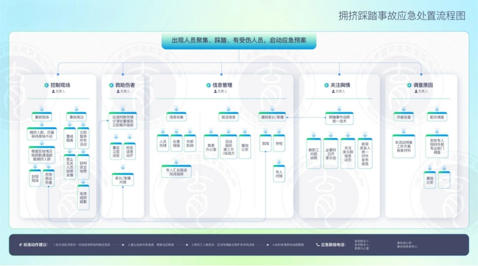 为进一步加强应急体系建设,提升学校应对突发事件的能力和水平,根据区教委发布的关于校园火灾、食品安全、拥挤踩踏等8类突发事件应急处置流程,为我校应急工作提供了权威、专业的指南。
