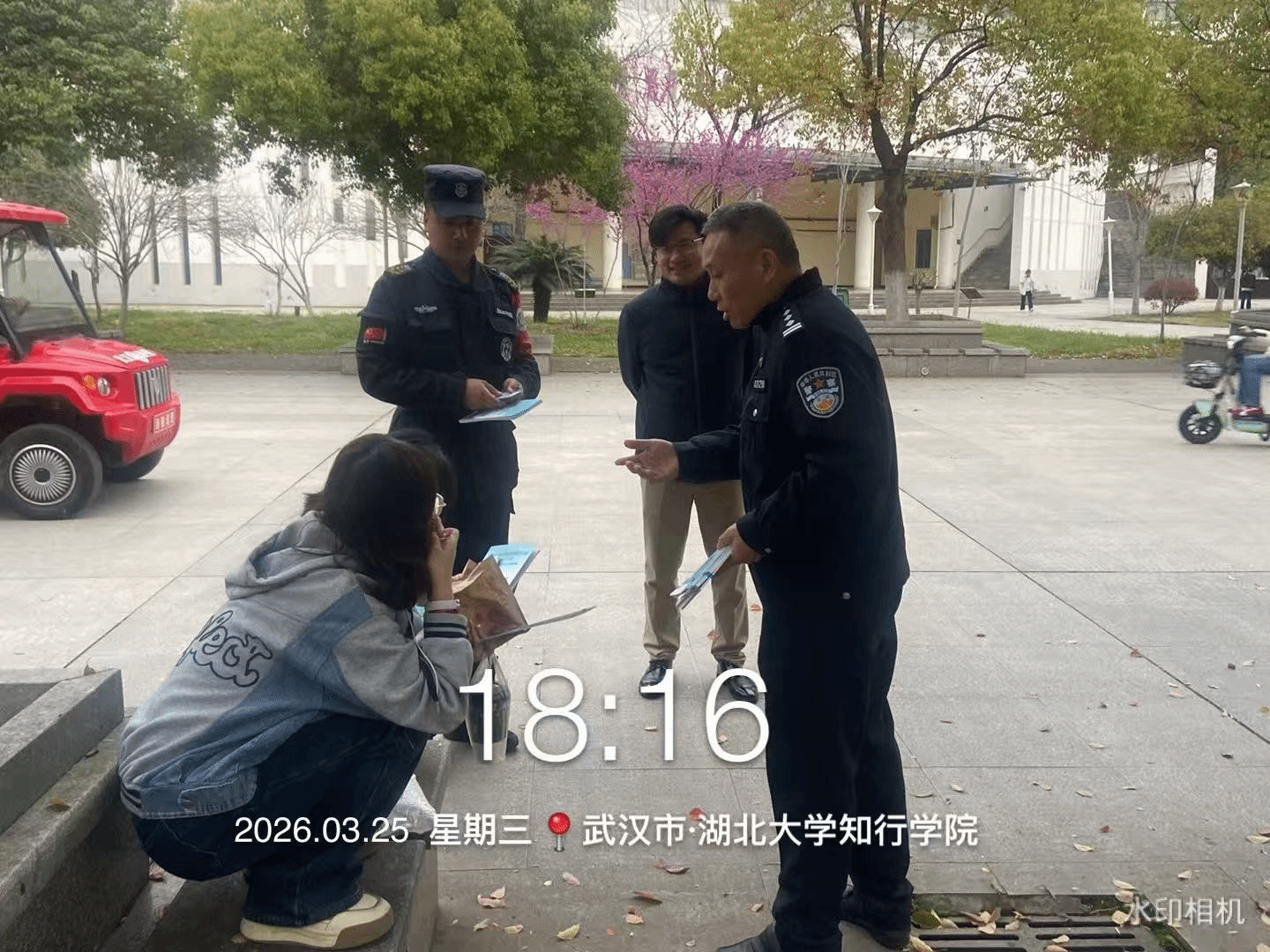 3月25日,湖北大学知行学院保卫部(处)携手谌家矶派出所,在校园主干道设立宣传点,开展“警校同心·反诈同行”主题普法活动。保卫部(处)副部(处)长李杨、谌家矶派出所彭警官现场指导,吸引百余名师生驻足参与。