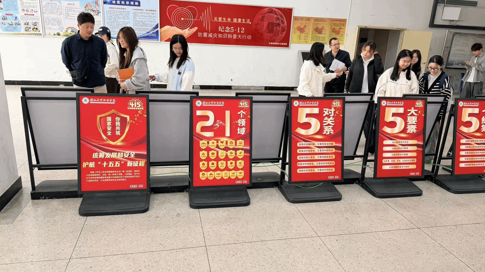 与此同时,报告厅楼下设置的国家安全宣传教育主题展板区,以图文并茂的形式生动展示了国家安全法律法规、公民维护国家安全的义务与权利等内容,吸引众多师生驻足学习。